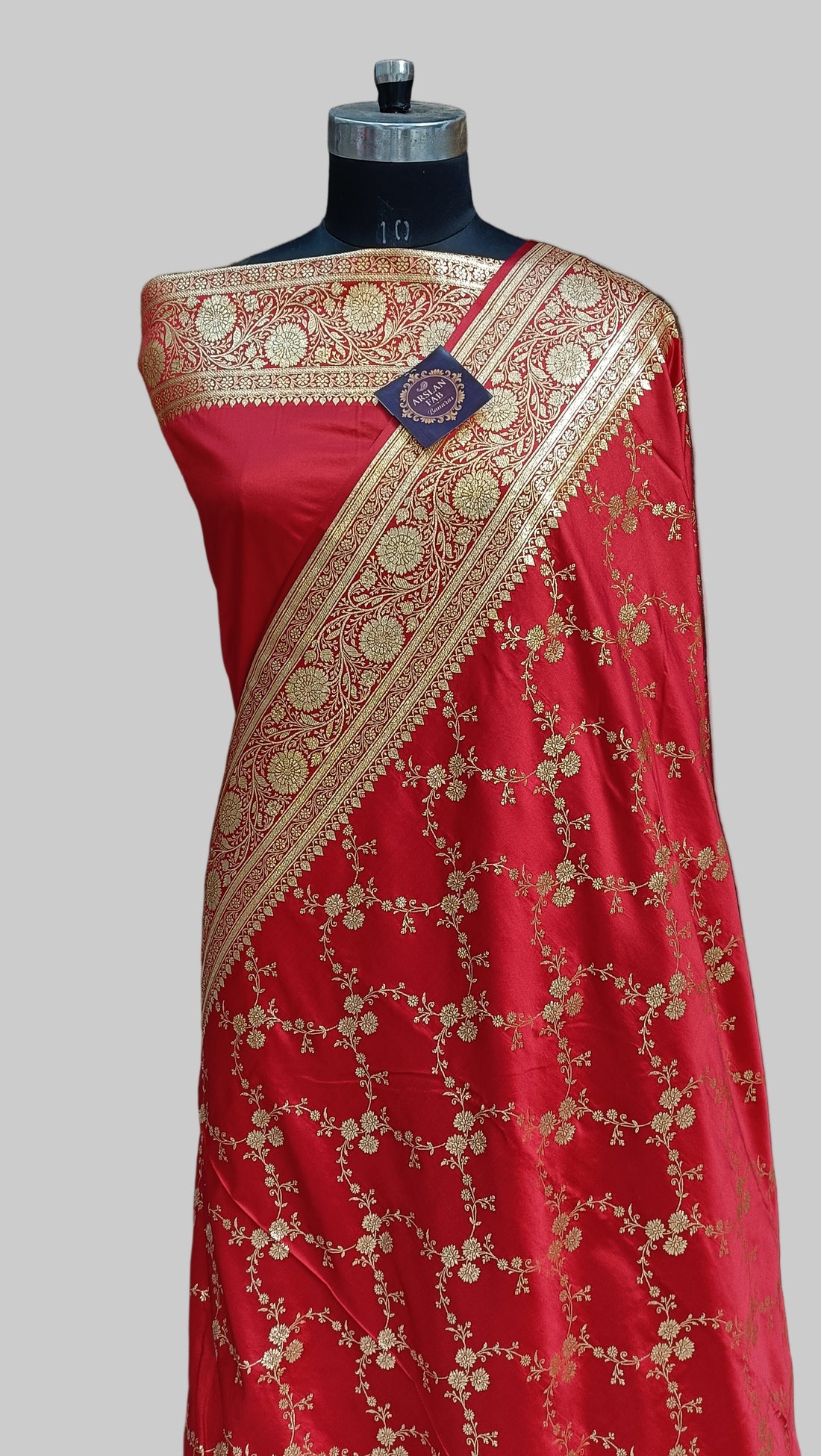A Banarasi Satin Saree is a luxurious blend of smooth satin silk and the timeless...