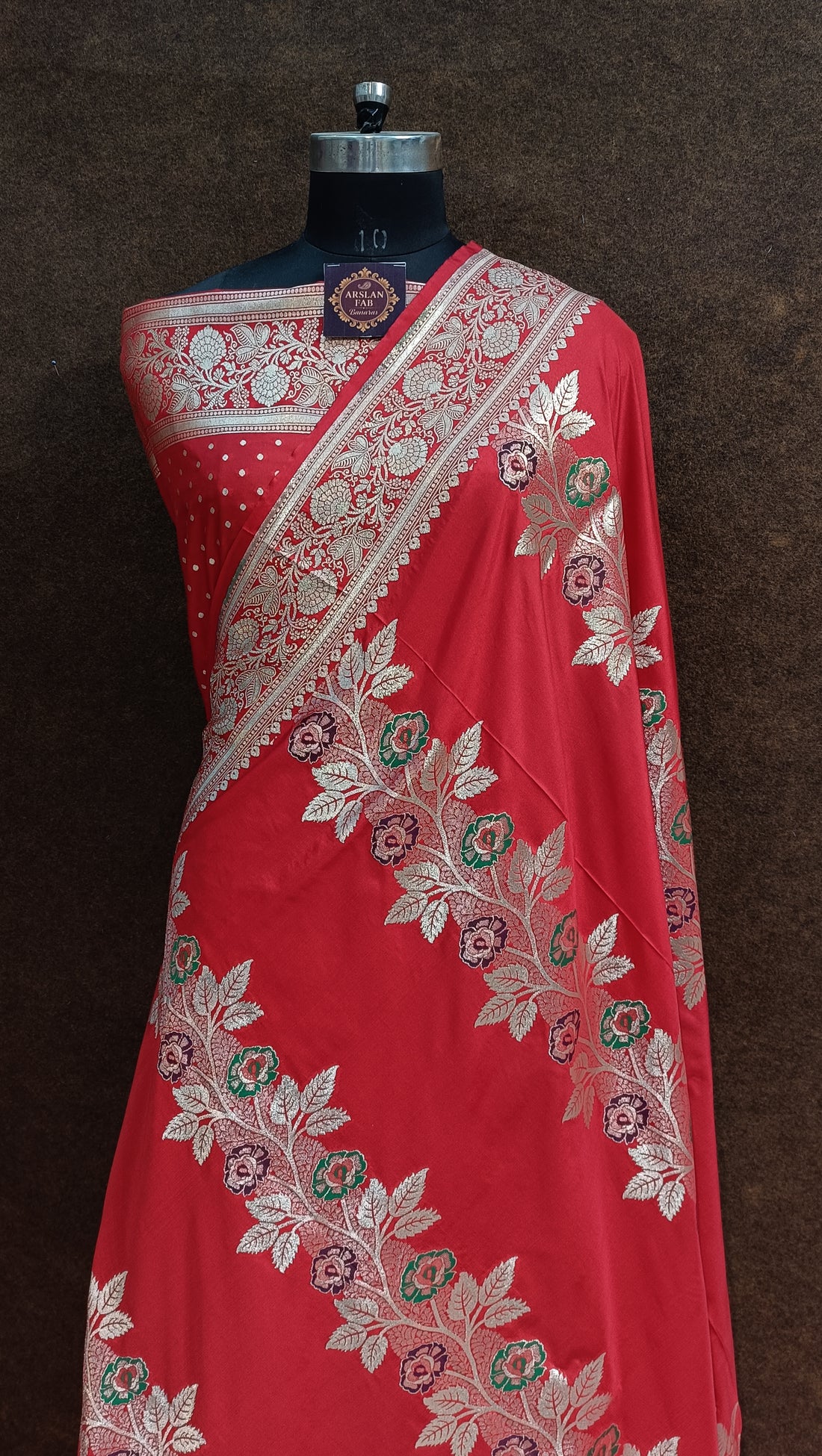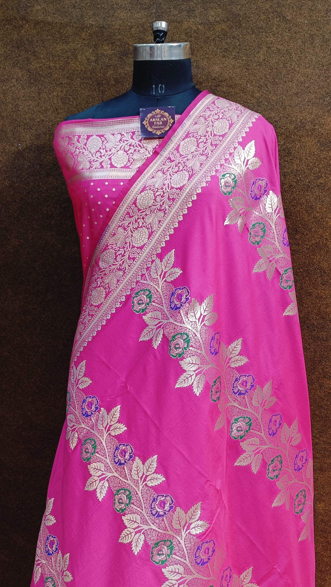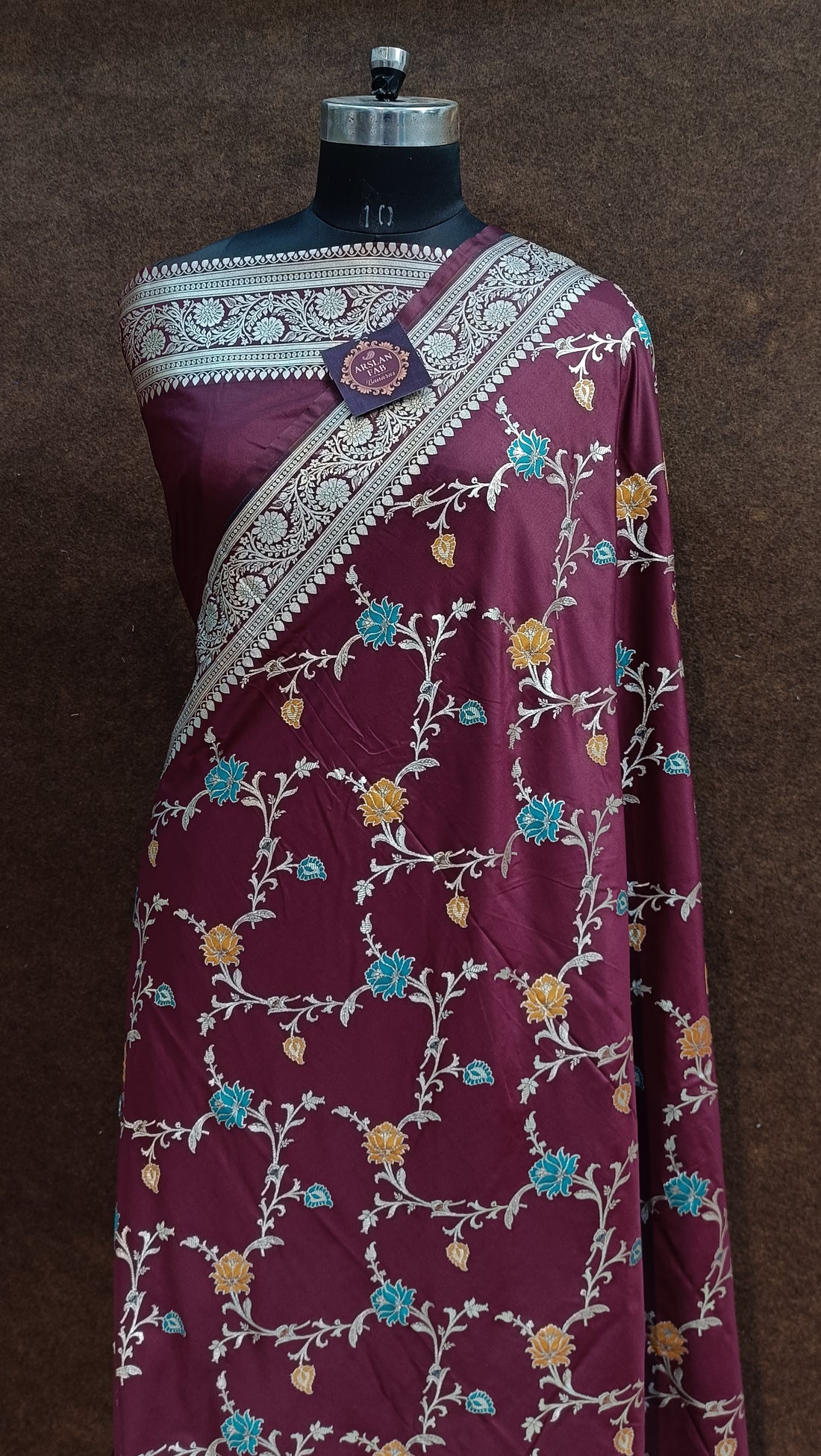 Maroon Banarasi Pawri  Silk  Meena Saree