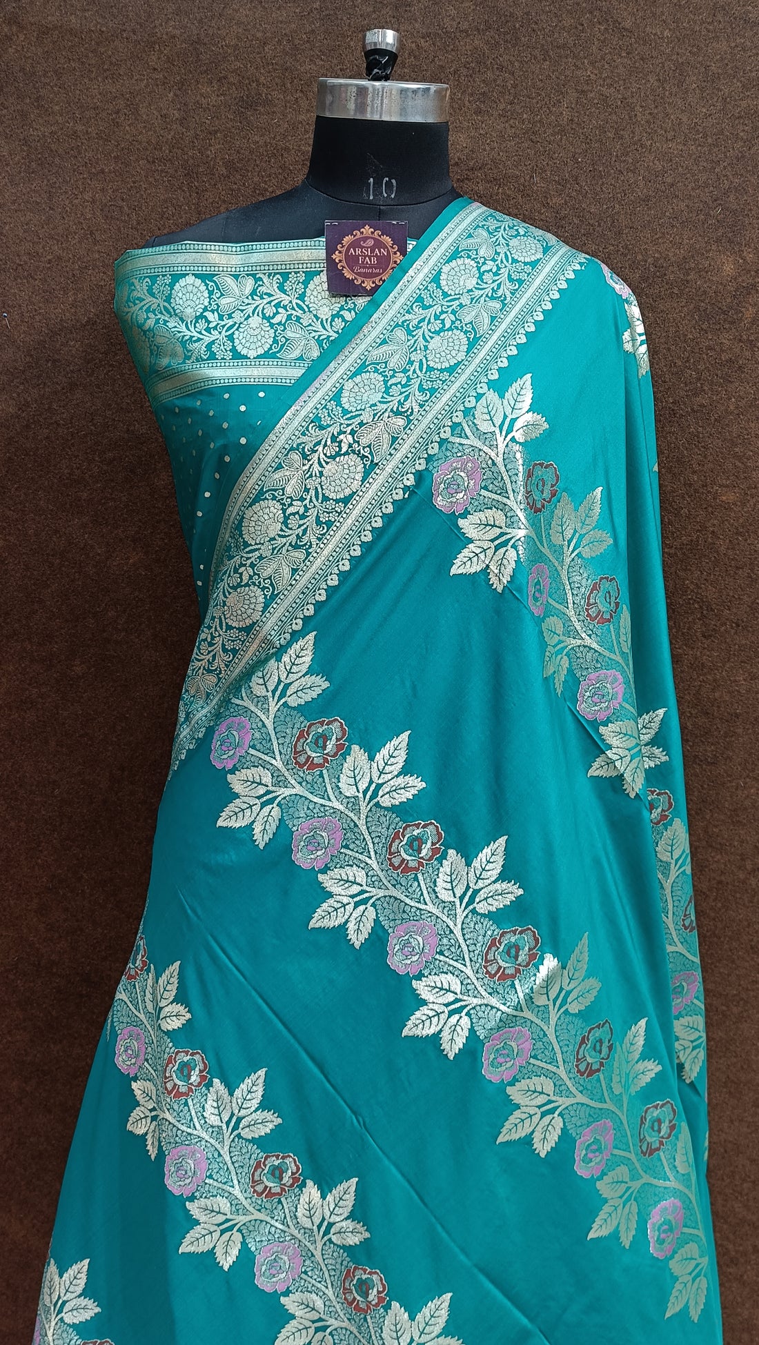 Parrot Green  Banarasi Pawri Silk Meena Saree