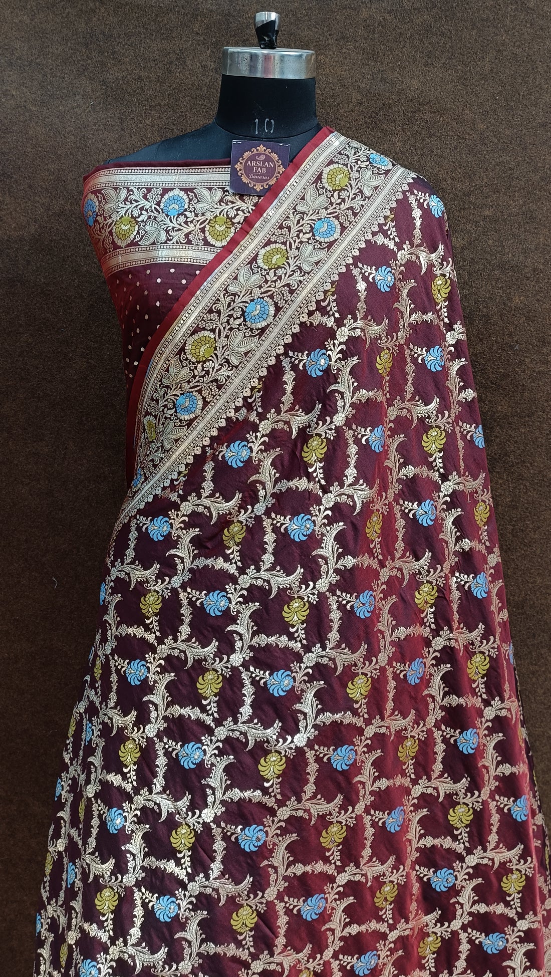 Banarasi Pawri Silk Saree is a perfect blend of royal elegance and traditional craftsmanship. Woven...