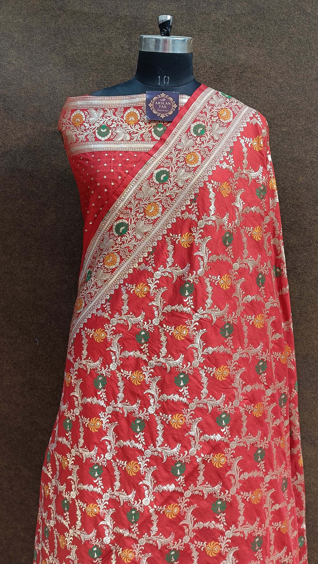 Rad Banarasi Pawri Silk Meenakari Saree
