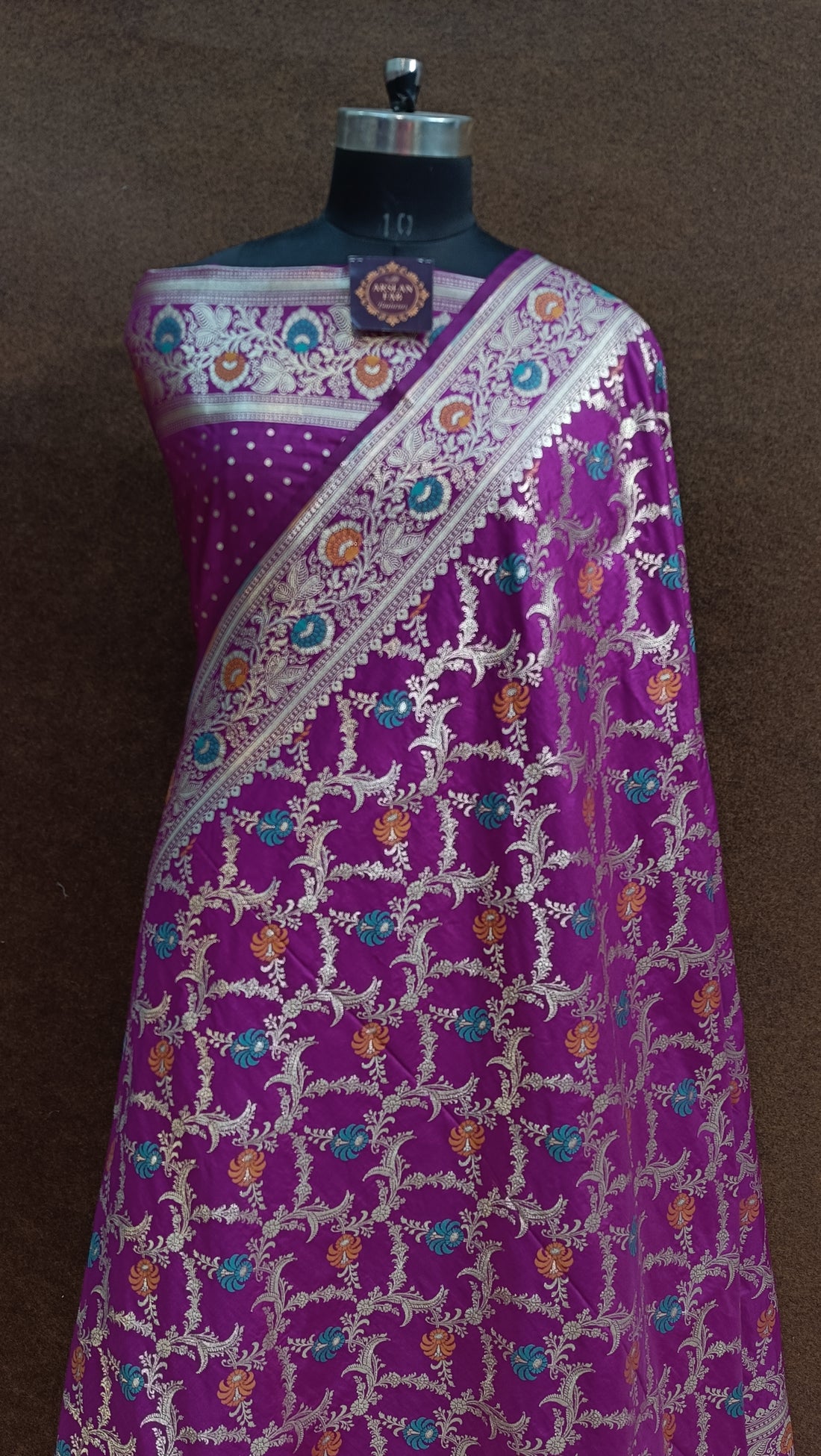 Magenta Banarasi Pawri Silk Meenakari Saree