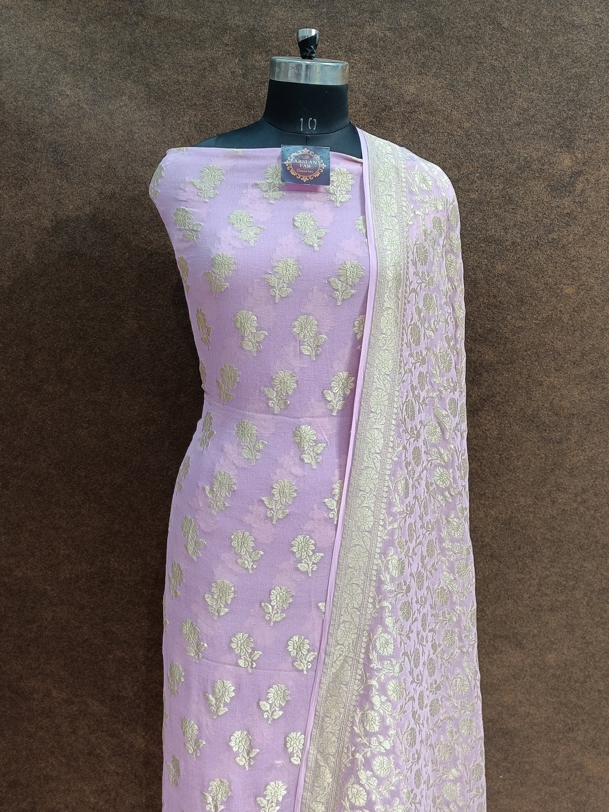 Banarasi Pure Khaddi Gerojette Pink Suit