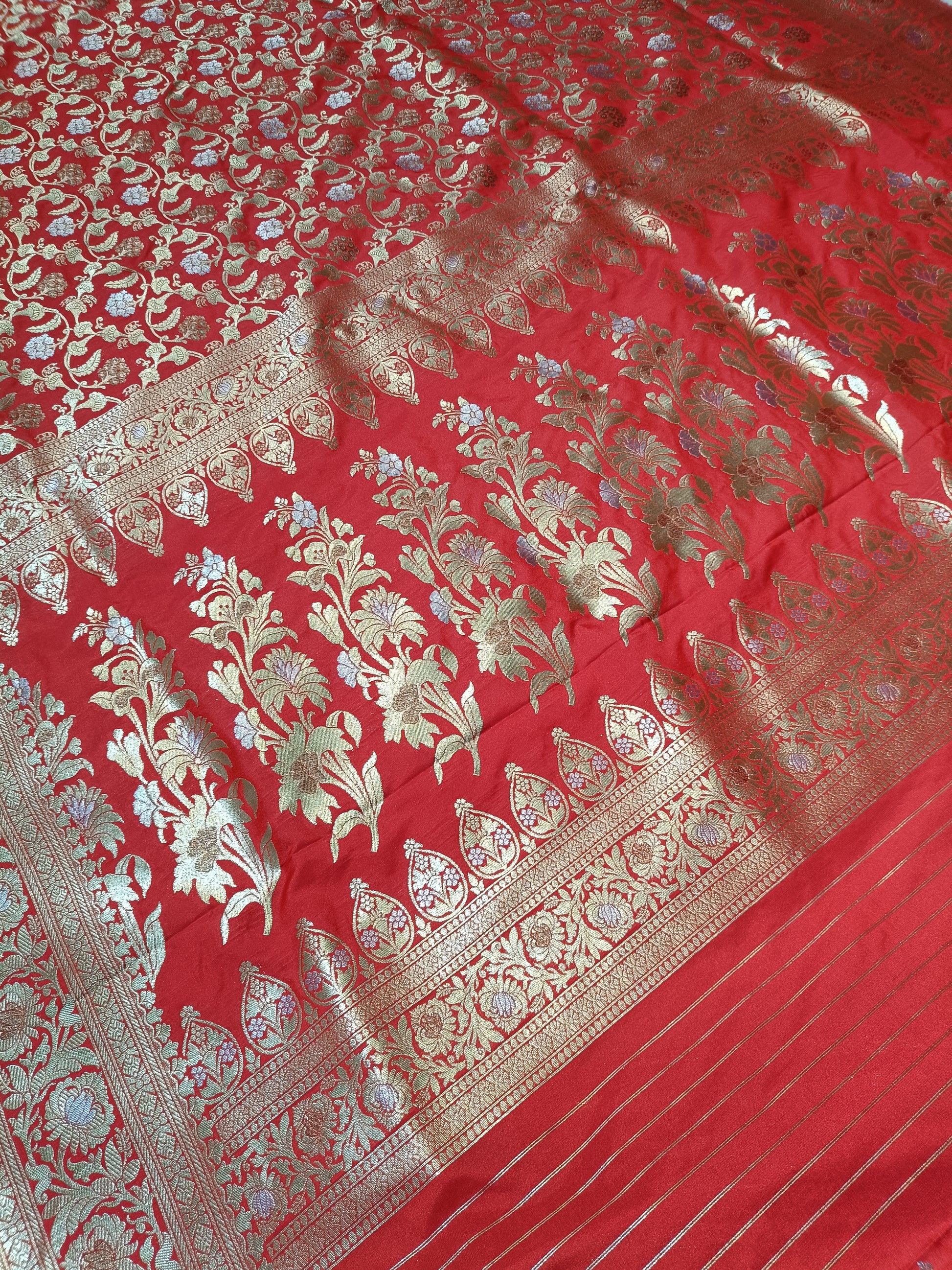 Banarasi Pawri Silk Saree is a perfect blend of royal elegance and traditional craftsmanship. Woven in Varanasi, this saree is crafted from fine Pawri silk, known for its soft texture, natural sheen, and durability. Adorned with intricate Zari motifs and rich borders, it reflects timeless artistry passed down through generations.