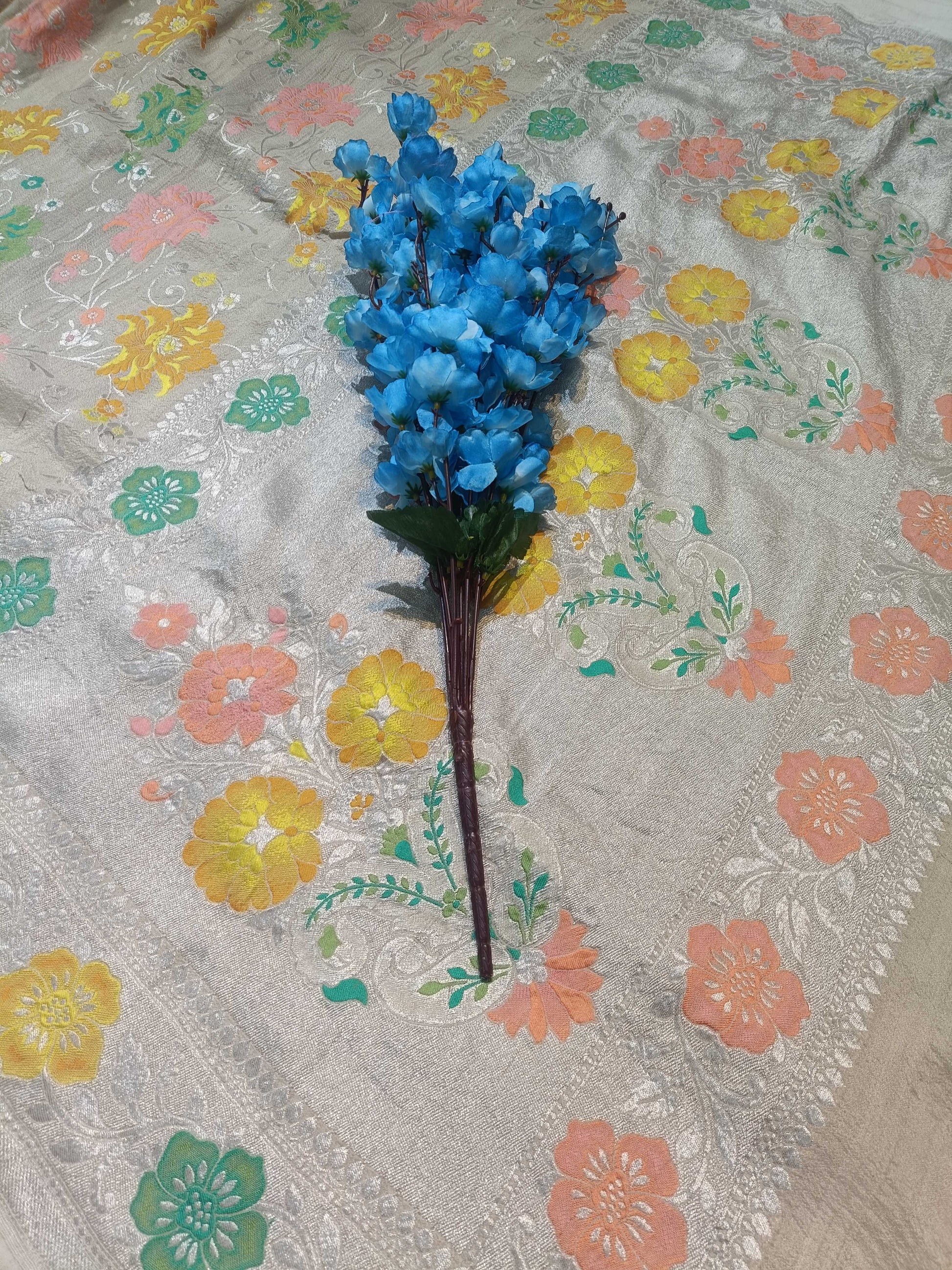 Embrace the elegance of tradition with our Banarasi Pure Tassar Silk Saree, beautifully adorned with intricate Alfi work. Crafted by skilled artisans in Varanasi, this saree is made from pure Tassar silk, known for its natural golden-beige tone, slightly coarse texture, and rich, organic feel The unique Alfi work — a meticulous technique where silver zari is polished with gold — adds a luminous, embossed effect to the motifs, making each piece stand out like a masterpiece. Ideal for weddings, festivals, and special celebrations, this saree combines the raw beauty of Tassar with the luxury of heritage Banarasi weaving..