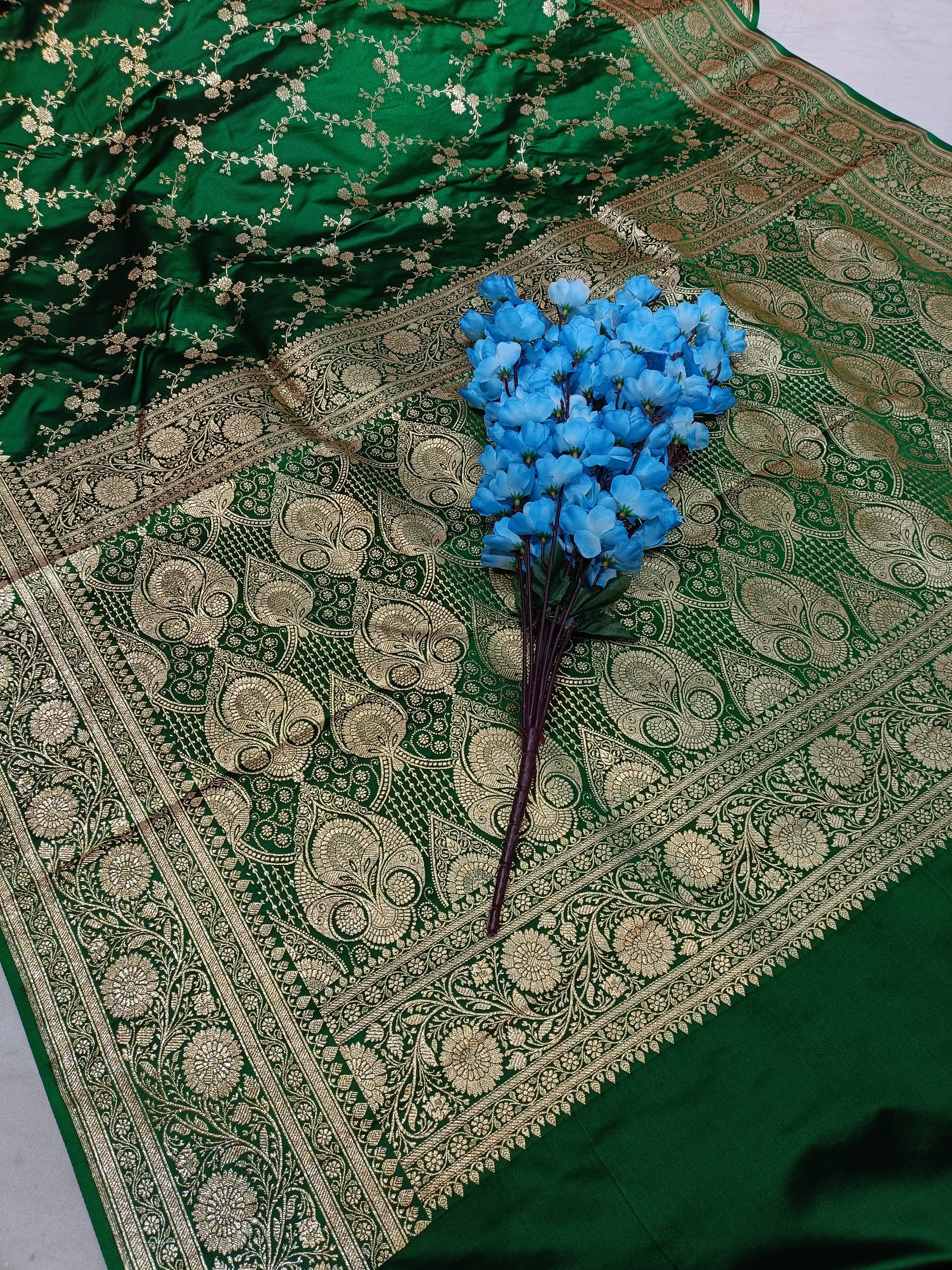 A Banarasi Satin Saree is a luxurious blend of smooth satin silk and the timeless artistry of Banaras weaving. Known for its lustrous finish, soft texture, and royal drape,