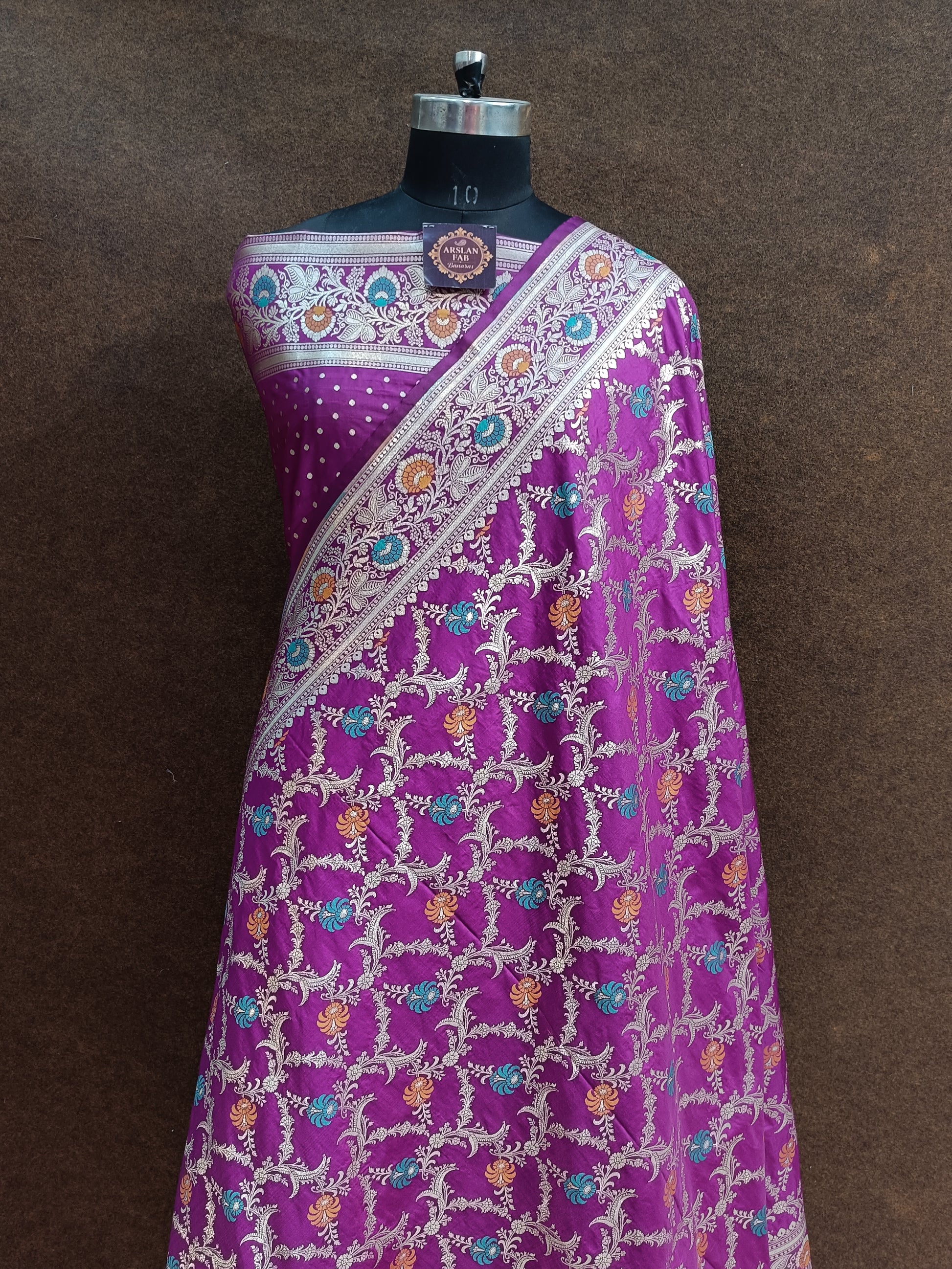 Magenta Banarasi Pawri Silk Meenakari Saree