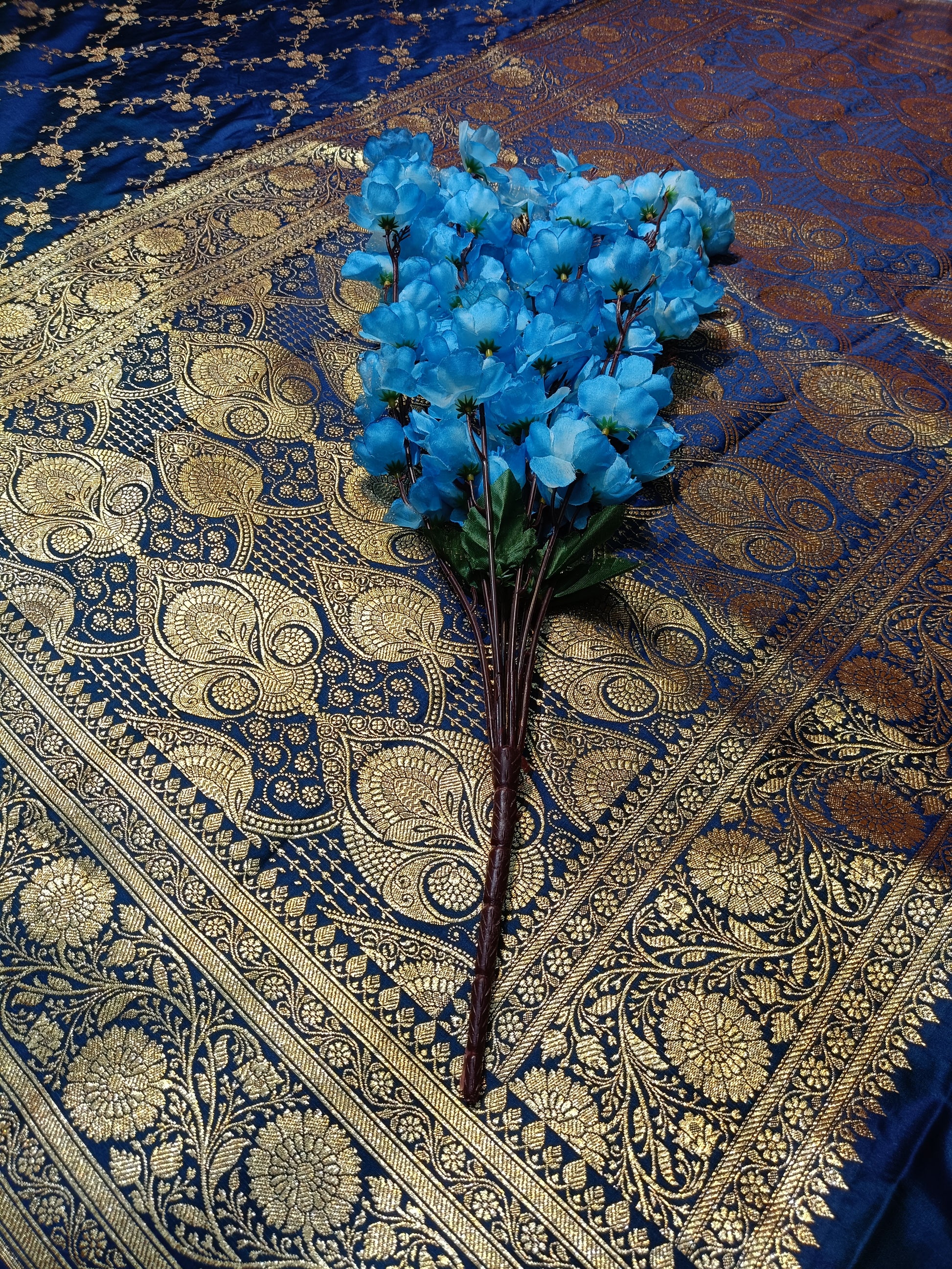 Navy Blue Banarasi Satan Silk Saree