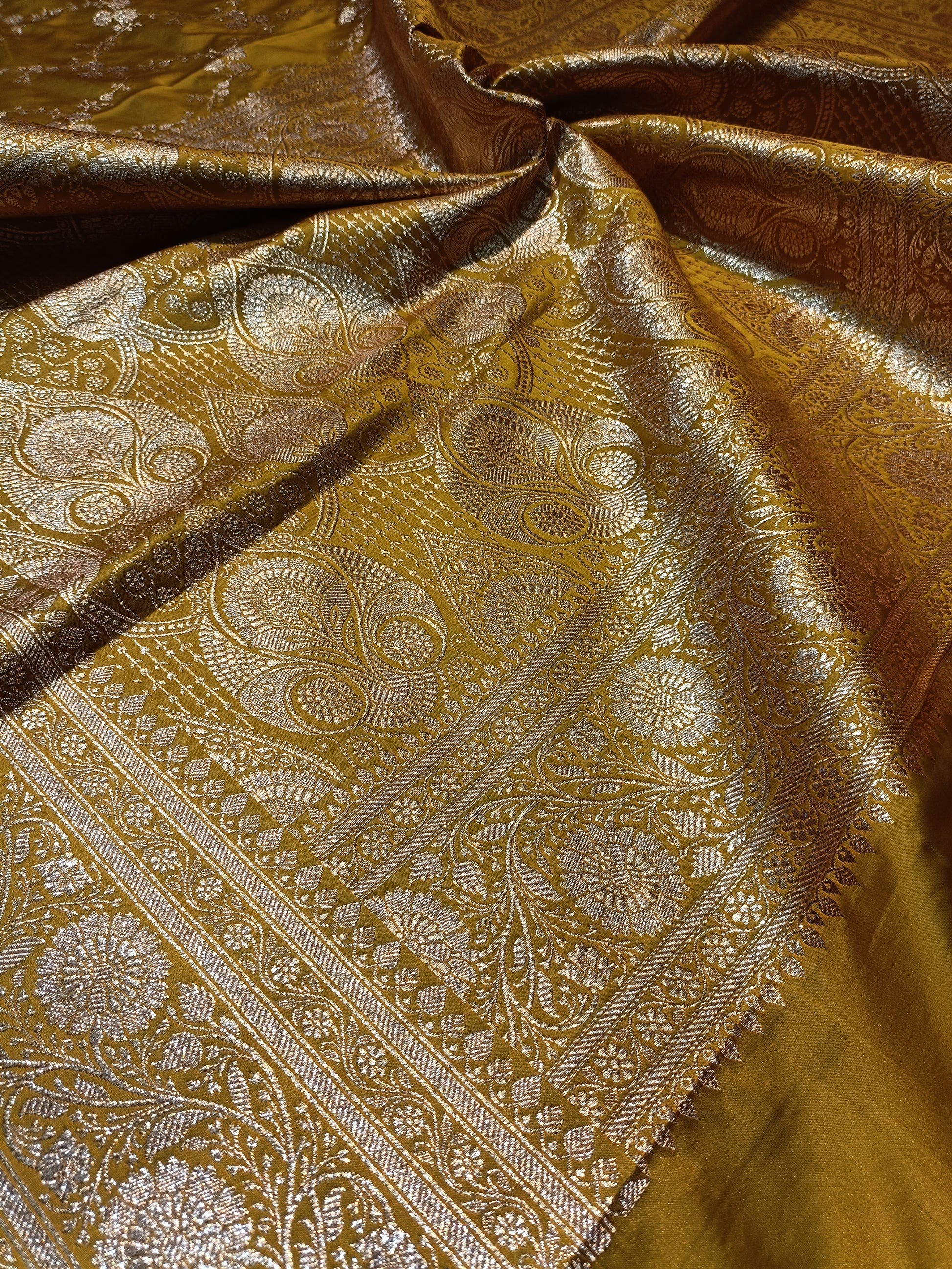 A Banarasi Satin Saree is a luxurious blend of smooth satin silk and the timeless artistry of Banaras weaving. Known for its lustrous finish, soft texture, and royal drape