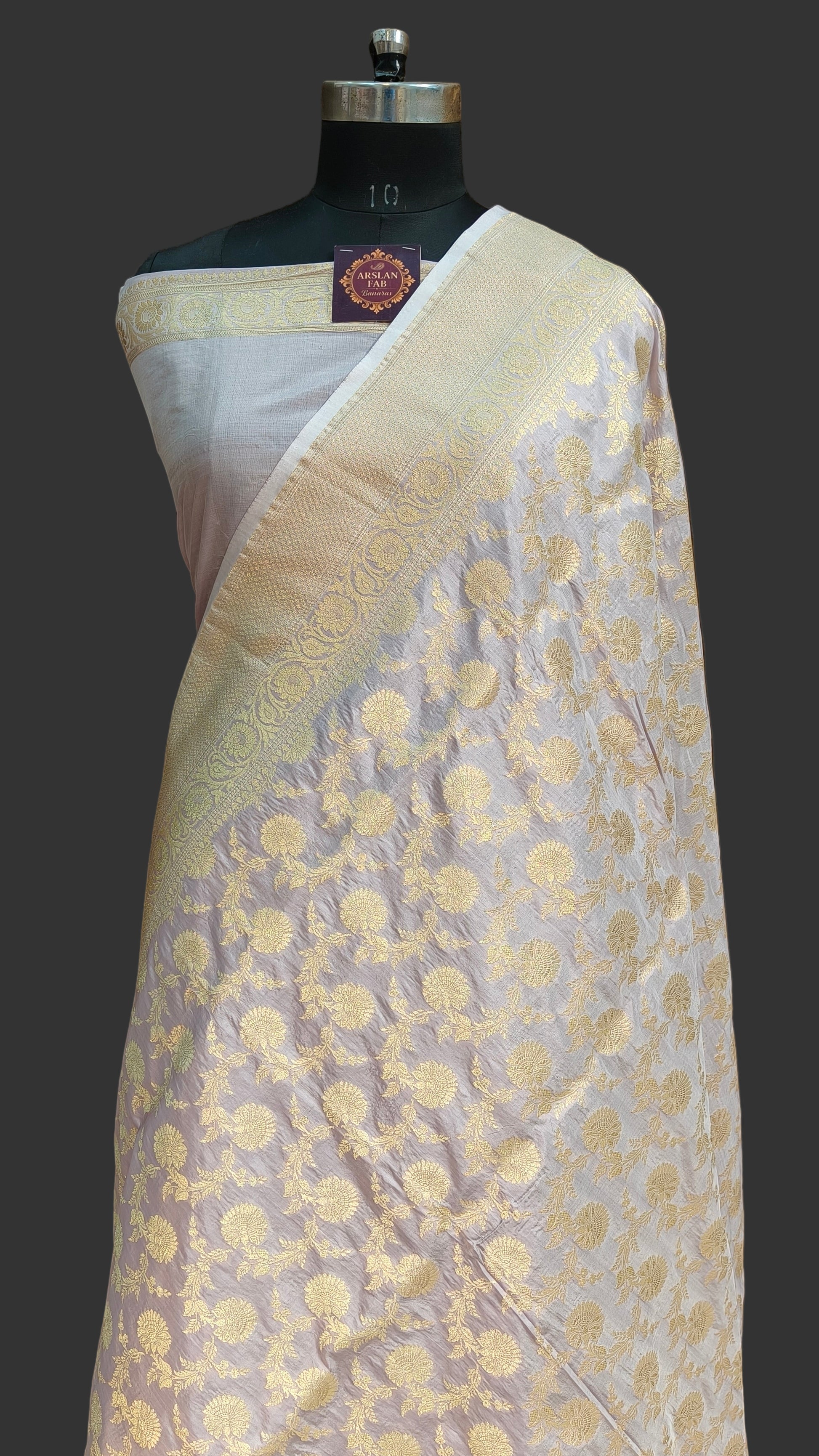 Indulge in timeless luxury with our Pure Katan Silk Saree, a true masterpiece of Banarasi craftsmanship. Woven from the finest pure mulberry silk threads, Katan silk is known for its rich texture, natural sheen, and durable yet soft feel.