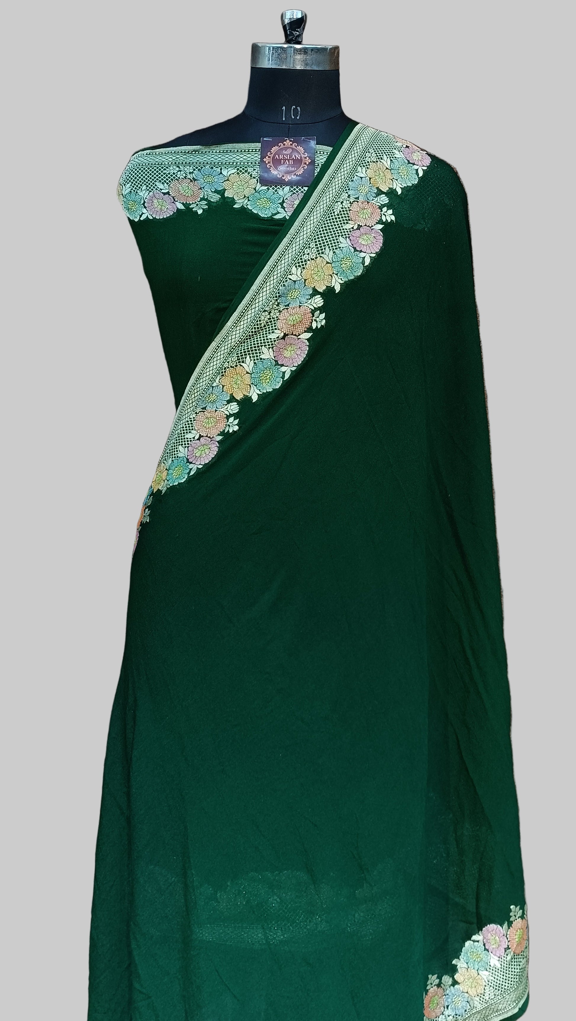 The Banarasi Georgette Saree is a timeless blend of elegance and tradition, crafted with lightweight georgette fabric and adorned with intricate Banarasi weaving.