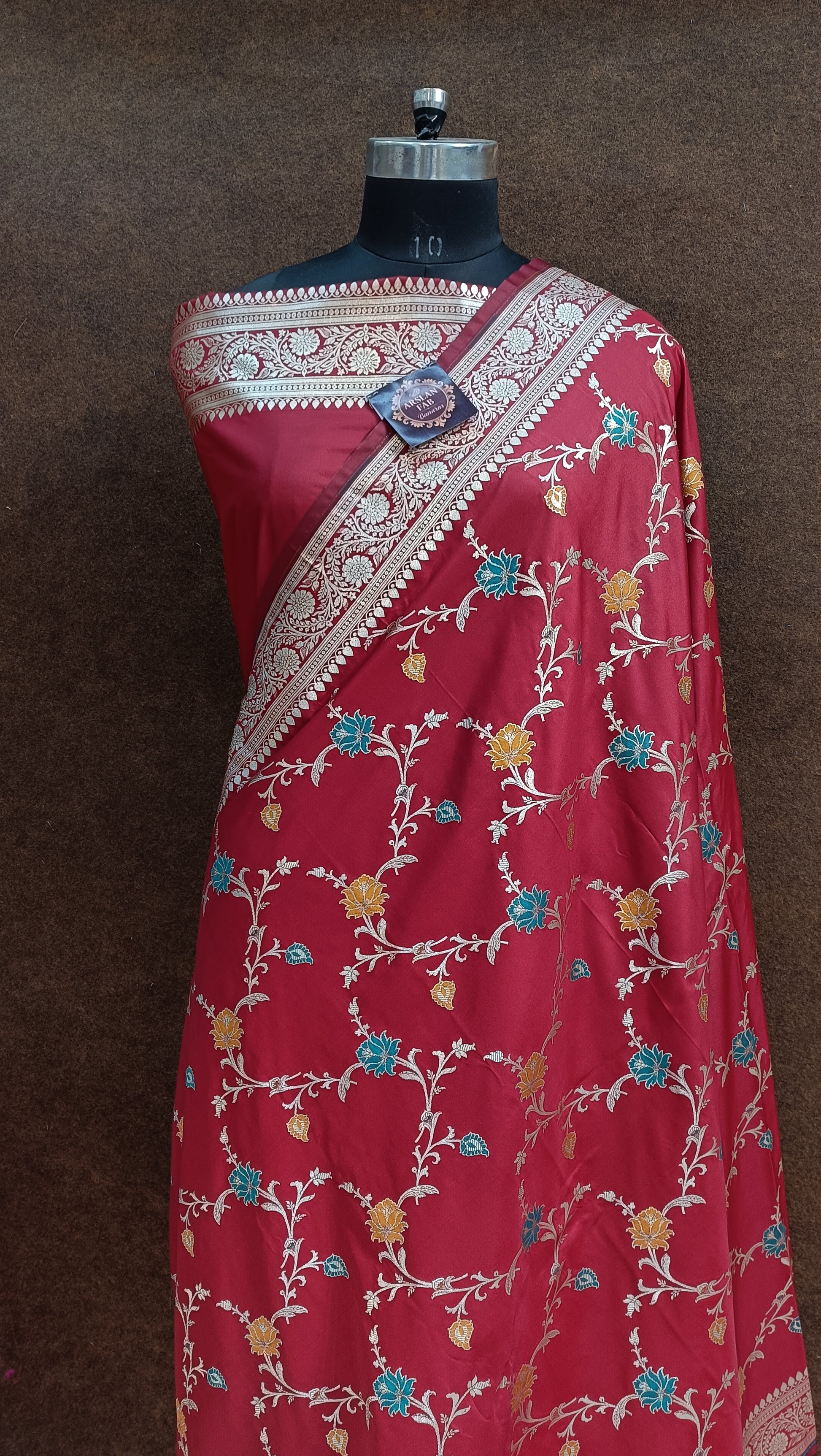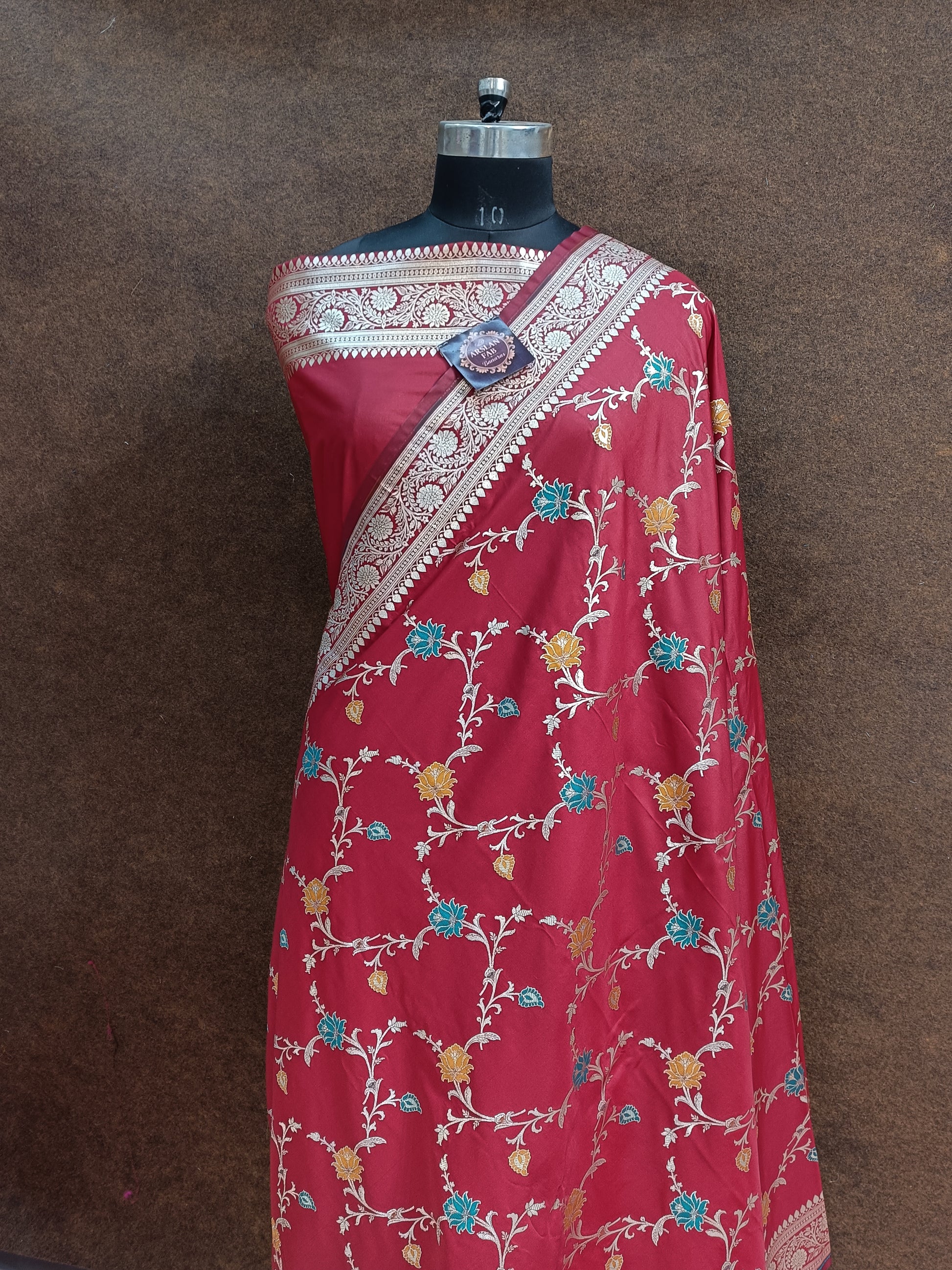 Banarasi Pawri Silk Saree is a perfect blend of royal elegance and traditional craftsmanship. Woven in Varanasi, this saree is crafted from fine Pawri silk,