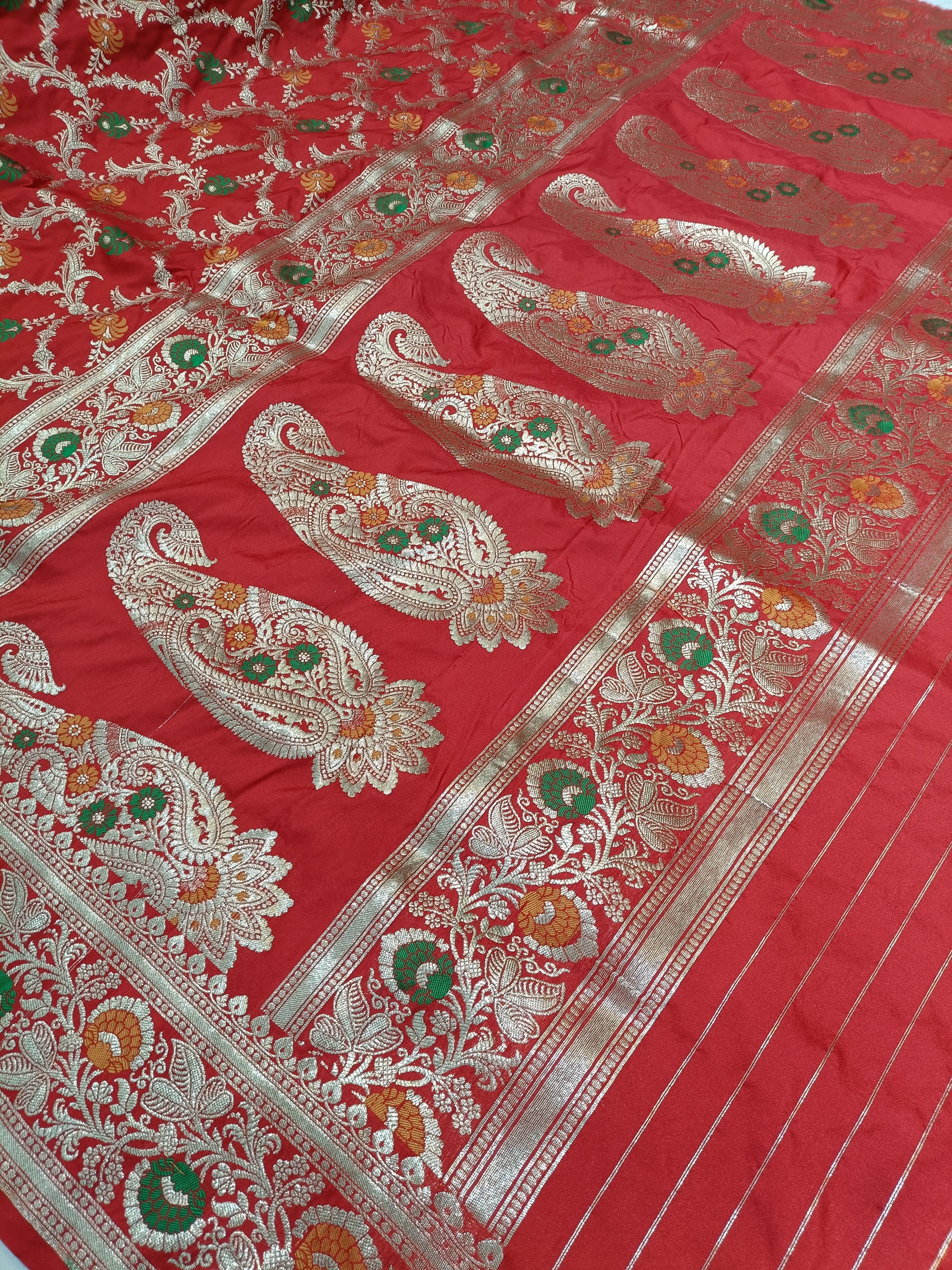 Banarasi Pawri Silk Saree is a perfect blend of royal elegance and traditional craftsmanship. Woven in Varanasi, this saree is crafted from fine Pawri silk, known for its soft texture, natural sheen, and durability.