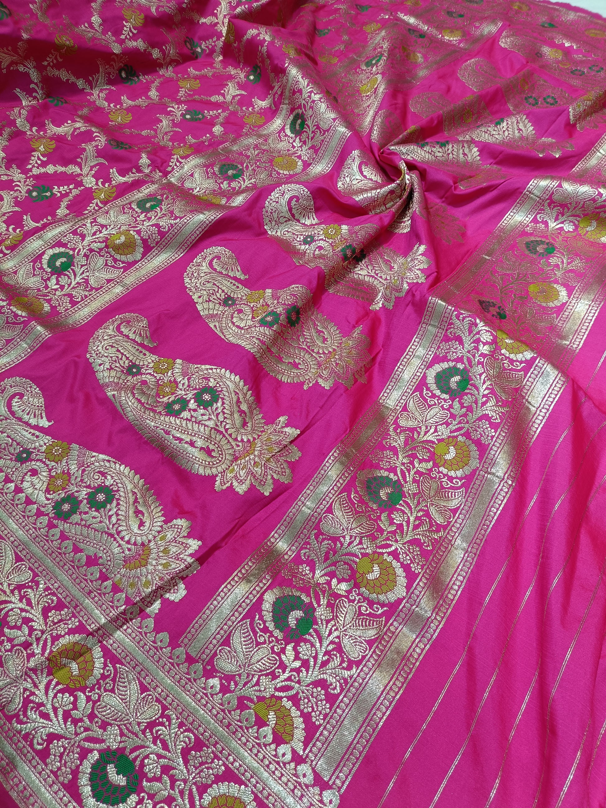 Banarasi Pawri Silk Saree is a perfect blend of royal elegance and traditional craftsmanship. Woven in Varanasi, this saree is crafted from fine Pawri silk, known for its soft texture, natural sheen, and durability.