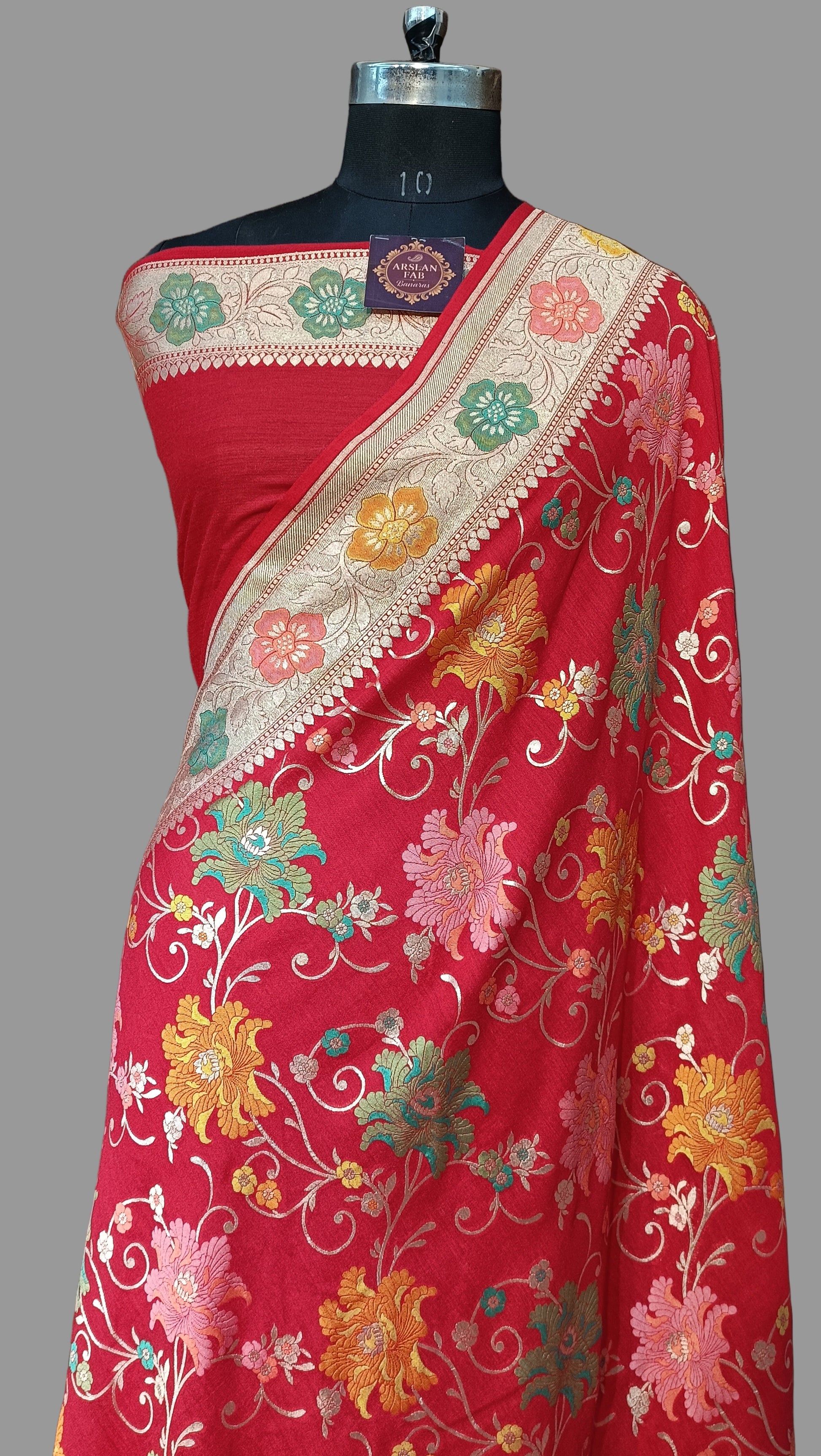 Red Banarasi Tilfi Pure Moonga Silk Saree