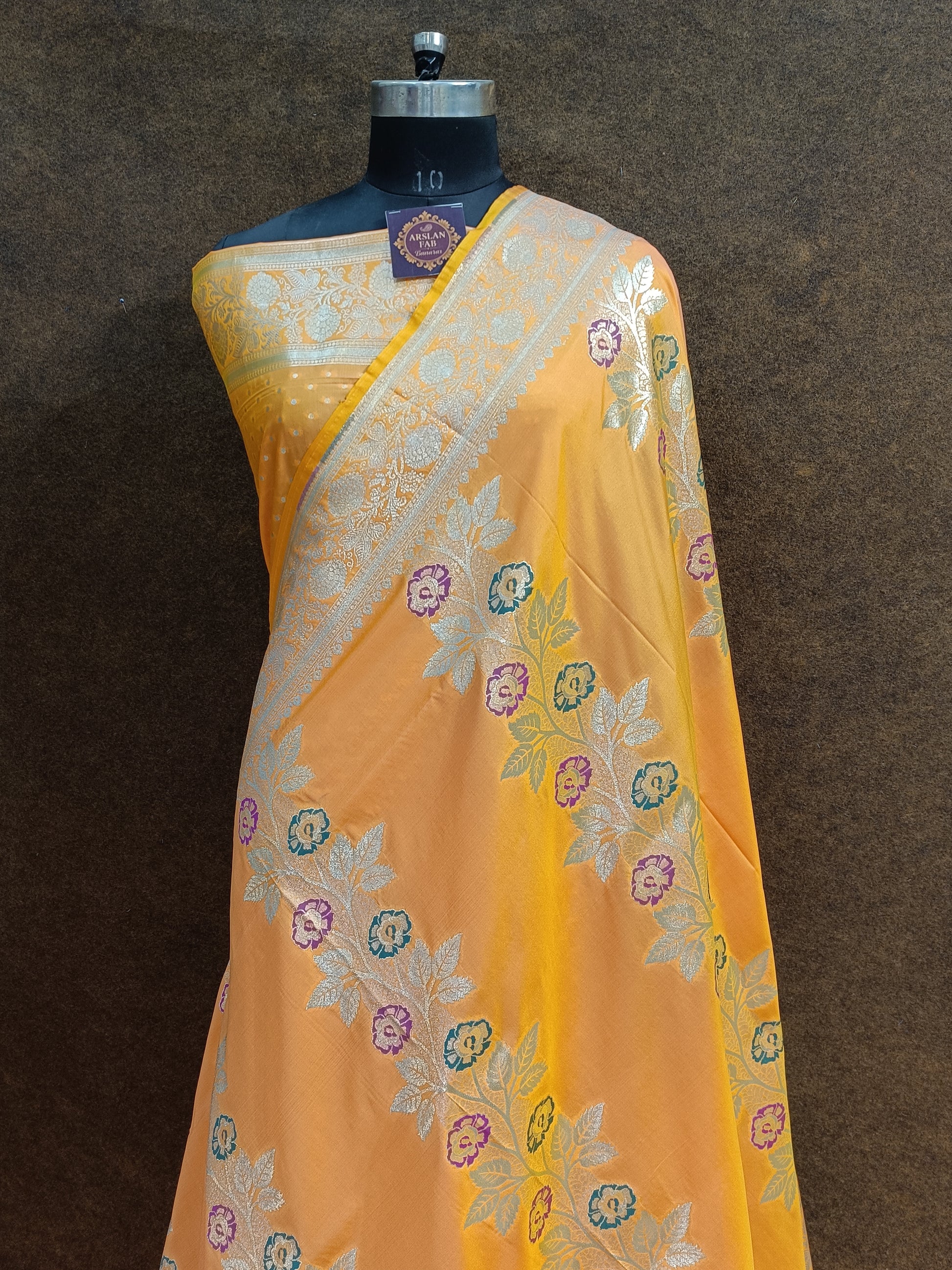 Yellow Banarasi Pawri Silk Meena Saree